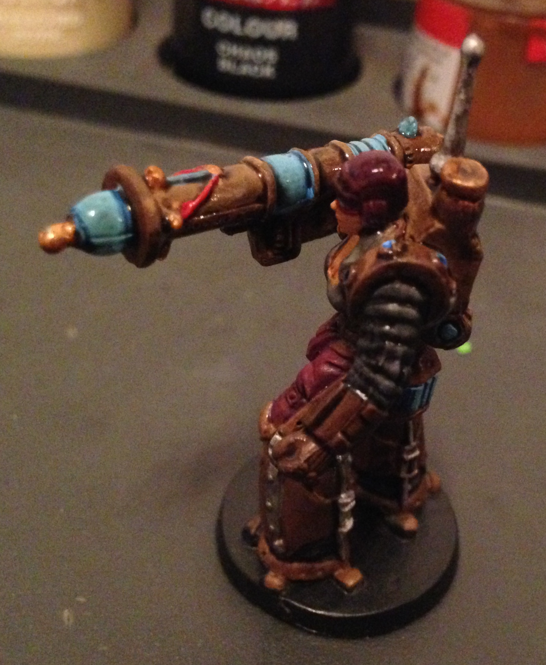 Then I added some colour detail to the wires on her gun. It doesn’t matter if any of this stuff is a bit loose, because it gets tightened up when I apply the shading.