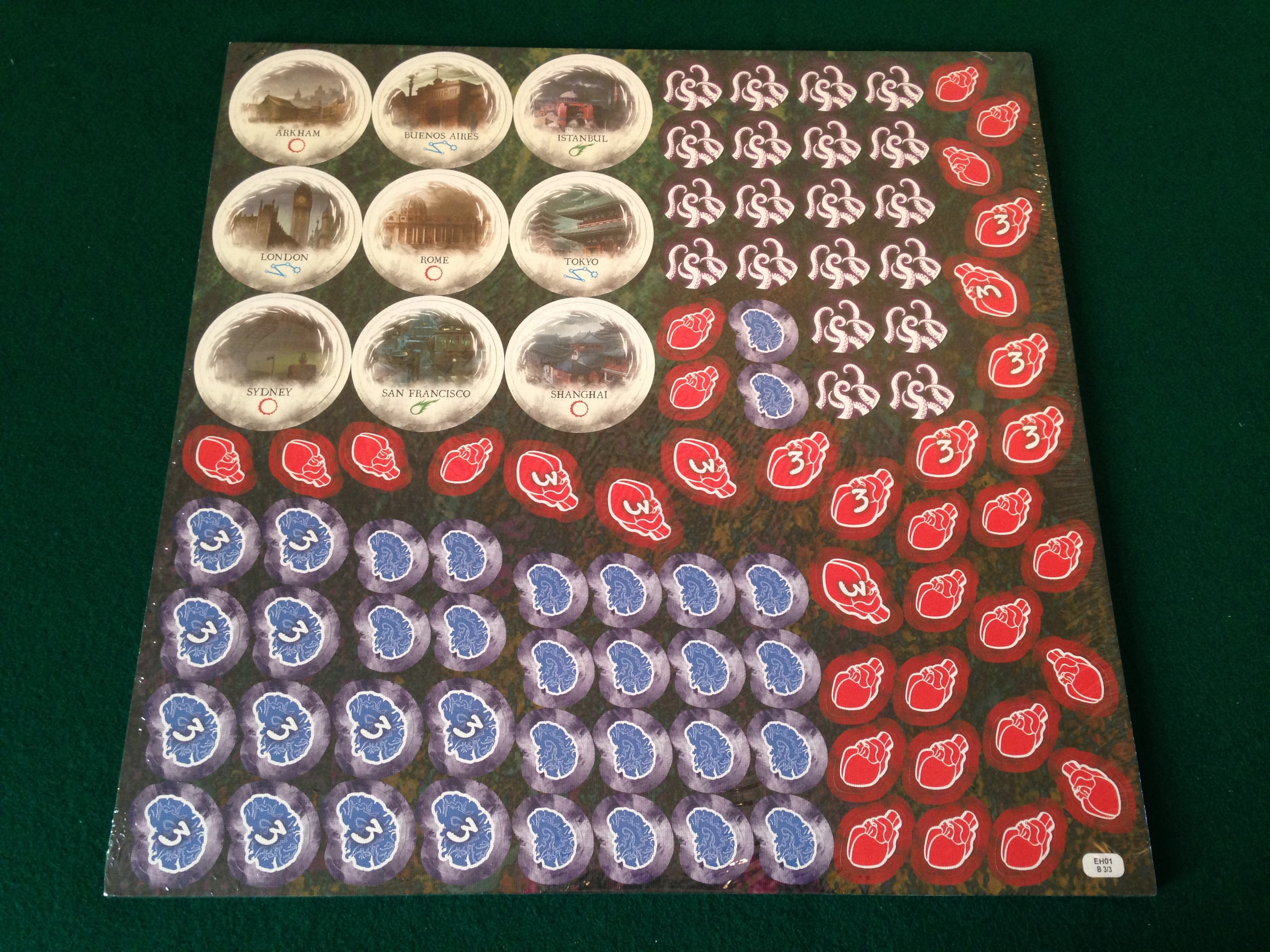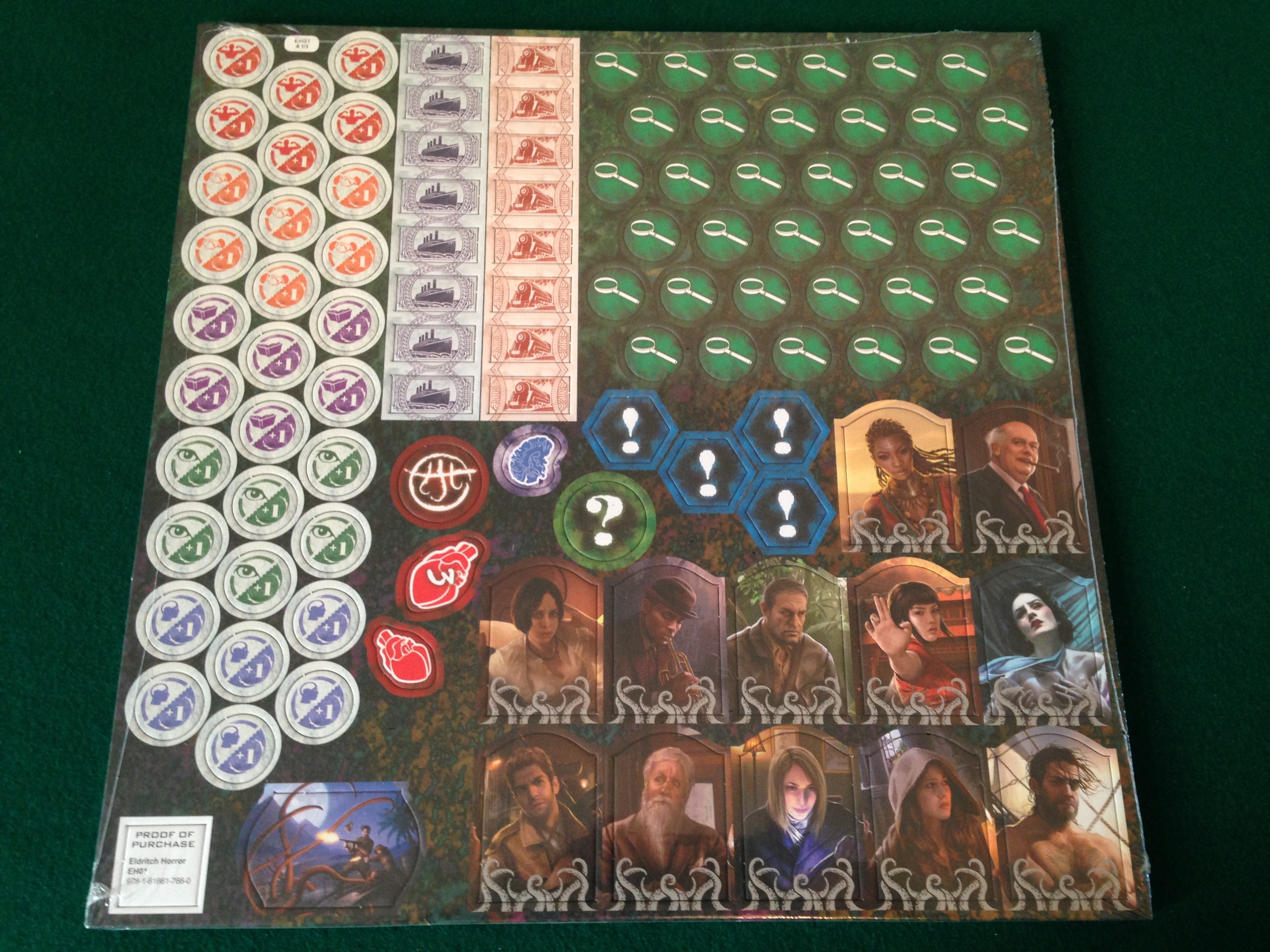 The second sheet has even more tokens, gates, health, and lots of sanity to lose.
