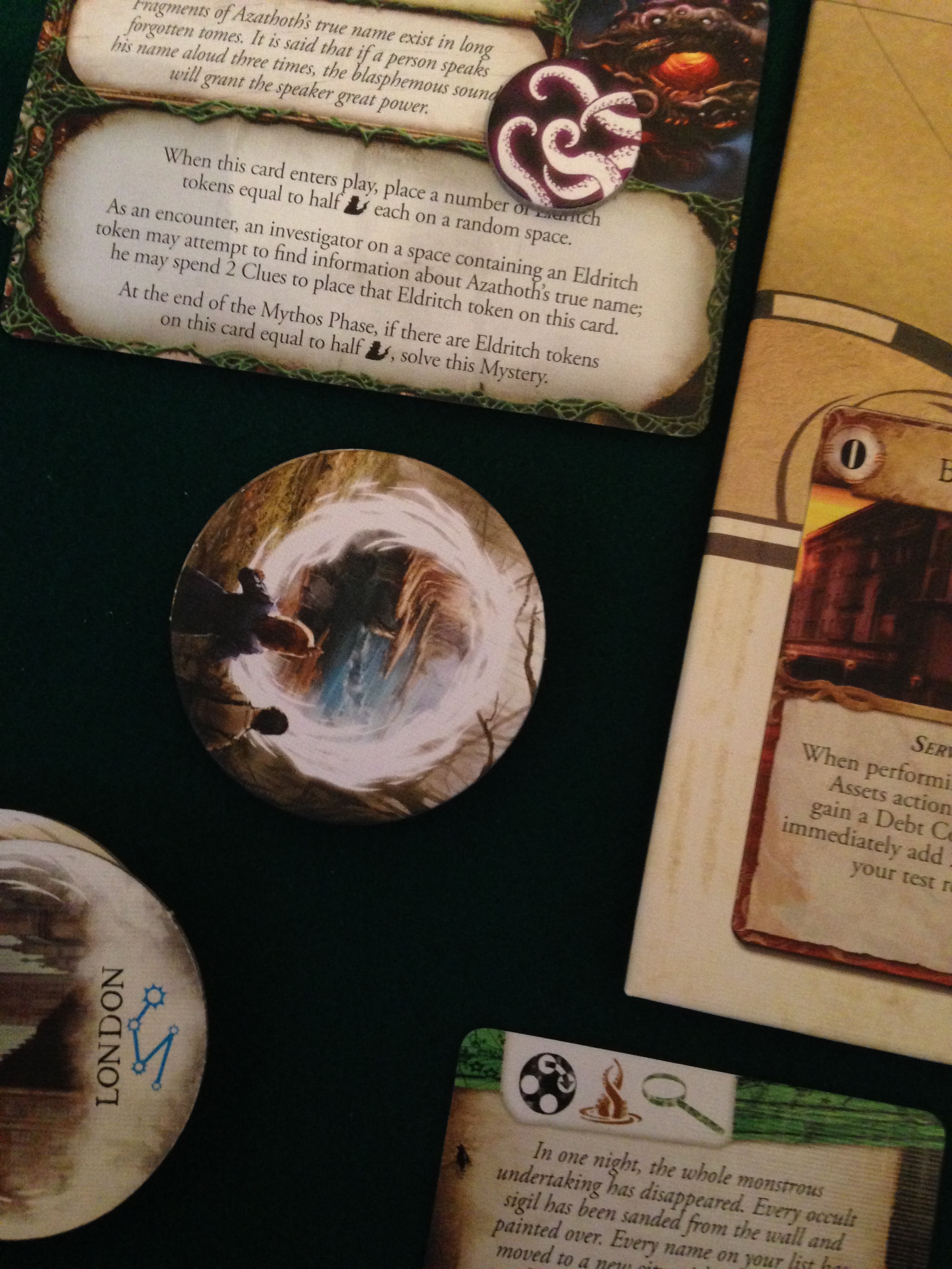 Jacqueline uses her encounter to place the eldritch token on the mystery. Lily waits anxiously in London. They have to wait until the end of the mythos phase.