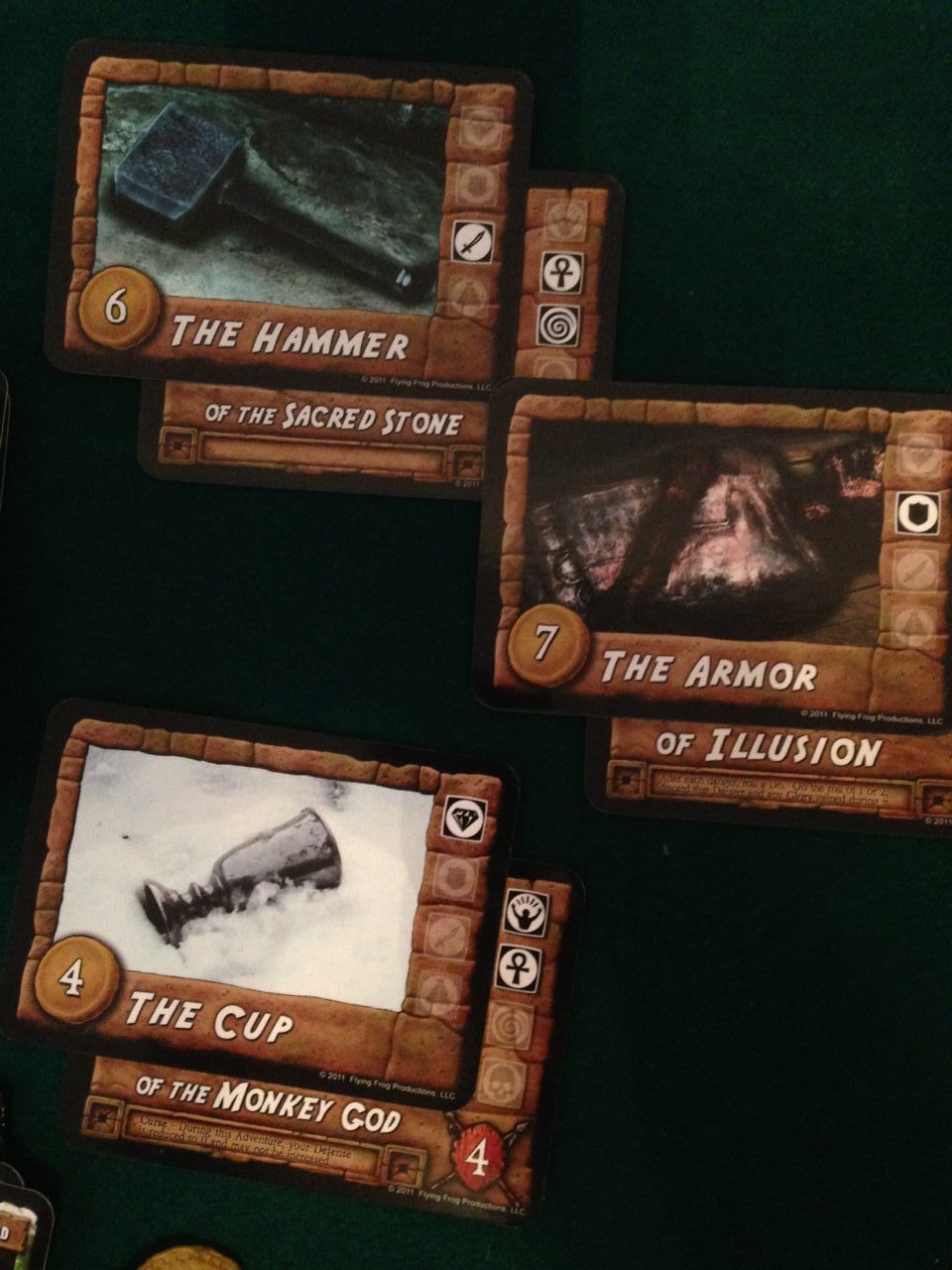 One of the things I like about this game is how they use two sets of cards to make up the artefacts that the heroes are chasing. One set of cards is the artefact ‘object’ and the other is the adventure ‘story’.