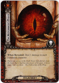 The other common source of damage is from treachery cards. These are like shadow cards, but are revealed during quests. Some of these are truly awful. I’m looking at you, Necromancer’s Reach.