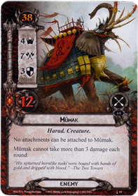 Take a look at this enemy from one of the difficult box scenarios, the Mumak war elephant. I can see why this box has a reputation for being difficult. The Mumak has 12 hit points and an attack of 7!