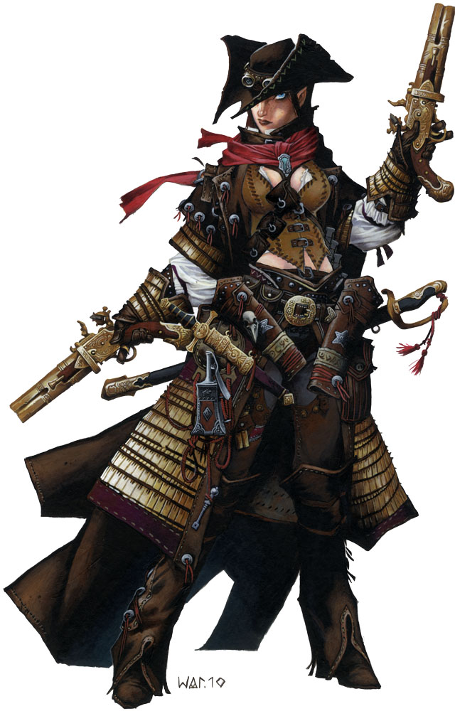 Lirianne drops lightly to the cobblestones and holsters her flintlocks.
