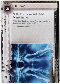 Binary ETR: These are usually cheap and good for putting on R&D or HQ early on, for example Enigma. They are rarely useful later on, as they get turned off once the runner has the matching breaker.