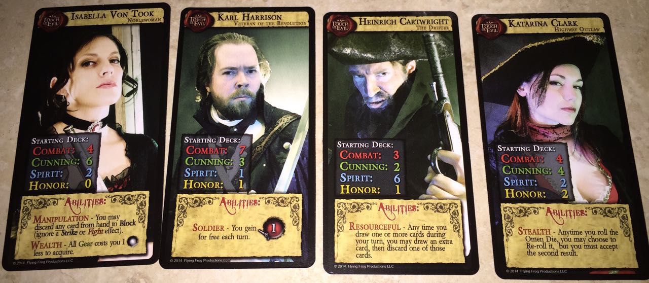 The characters are the same as in the original boardgame. I painted all the boardgame figures, but they can’t really be used here in the card game. Maybe as lucky mascots?