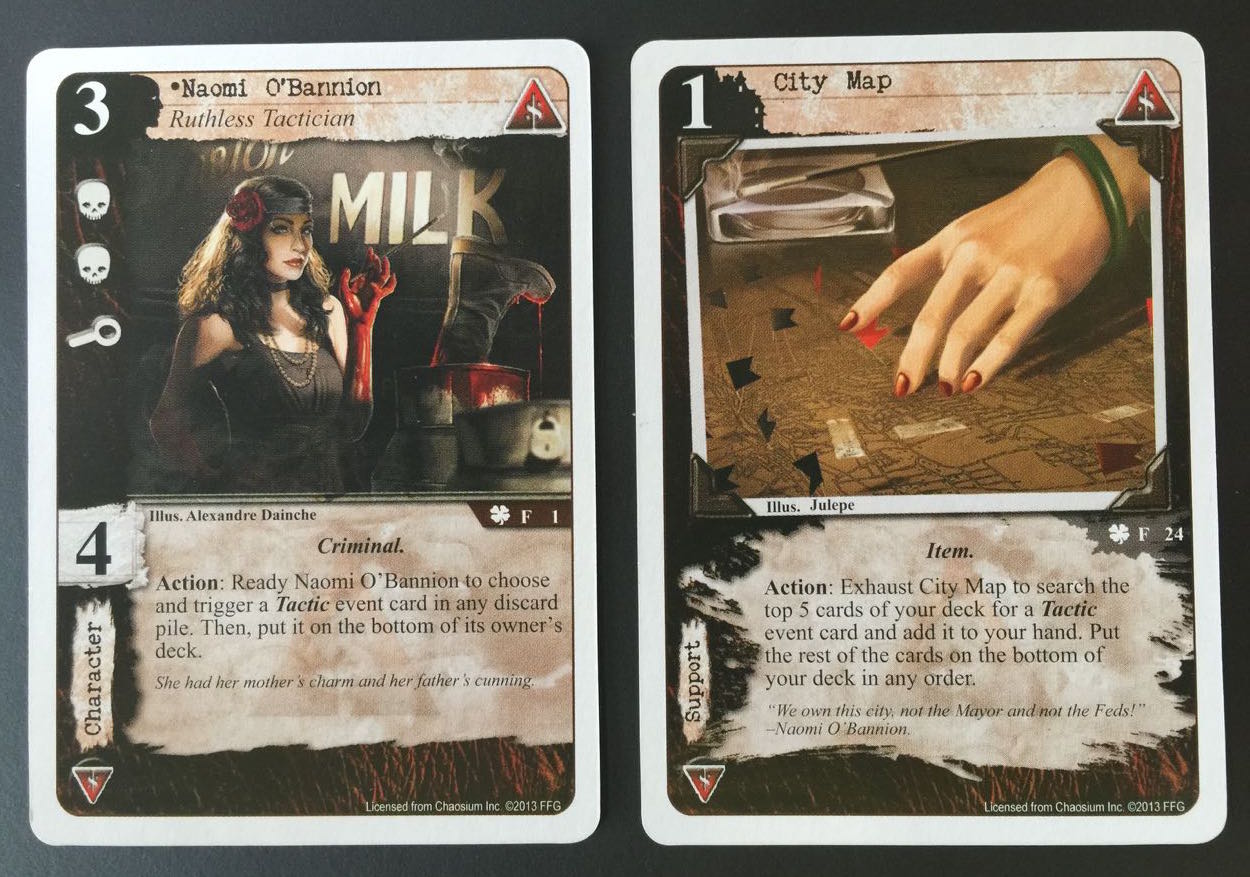 The best example is Naomi O’Bannion, the up-and-coming daughter of the current mob boss. She has a good set of icons and skill for her cost and can reuse tactics from the discard pile.