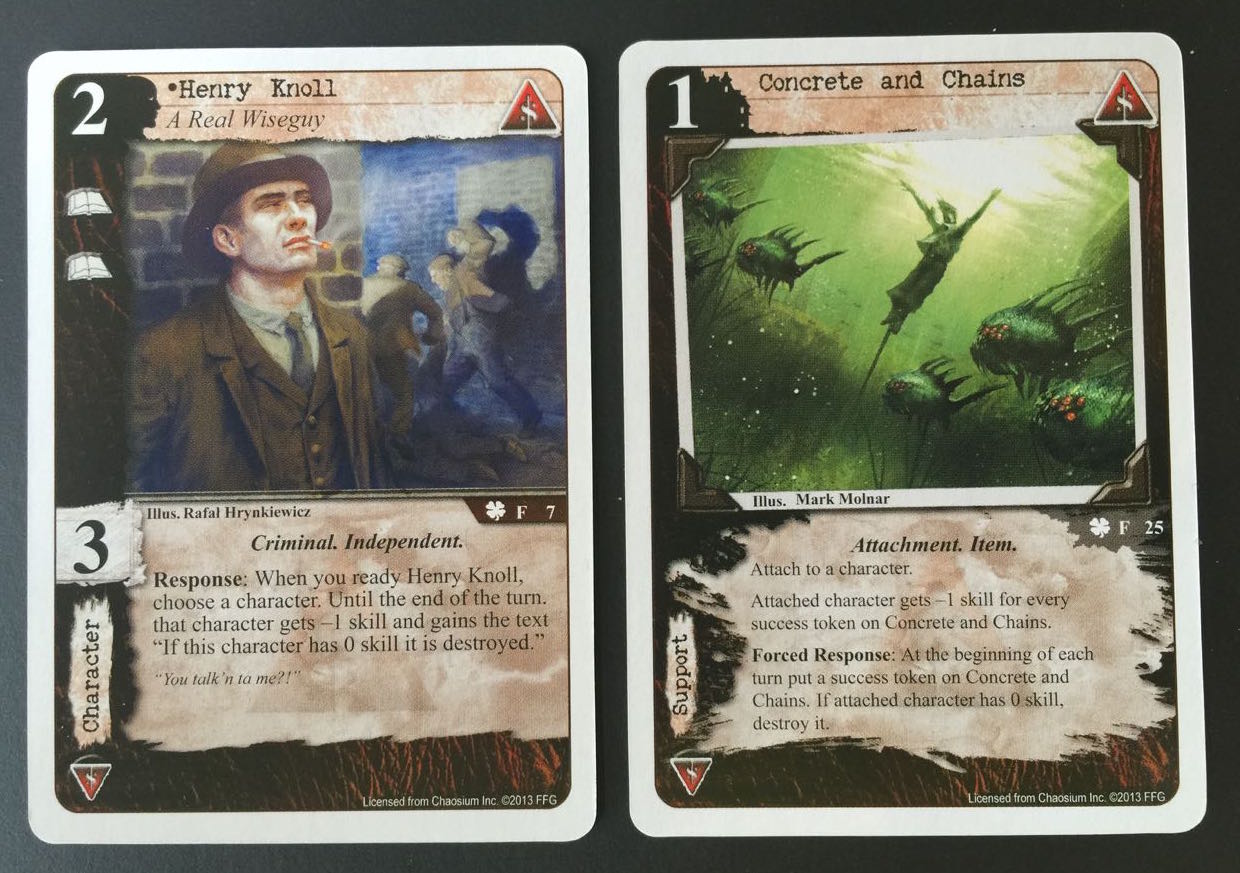 One of the recent deluxe expansions for the Call of Cthulhu Card Game is the Syndicate box, ‘Denizens of the Underworld”.