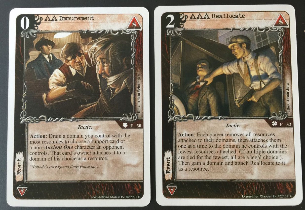 Examples of tactics. Immurement can get rid of an opponent’s key character, and Reallocate can give you an additional domain.